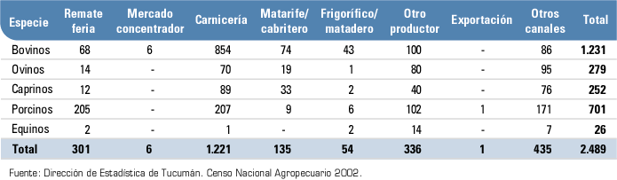 Primera venta de ganado en pie por especie ganadera según canales de comercialización.