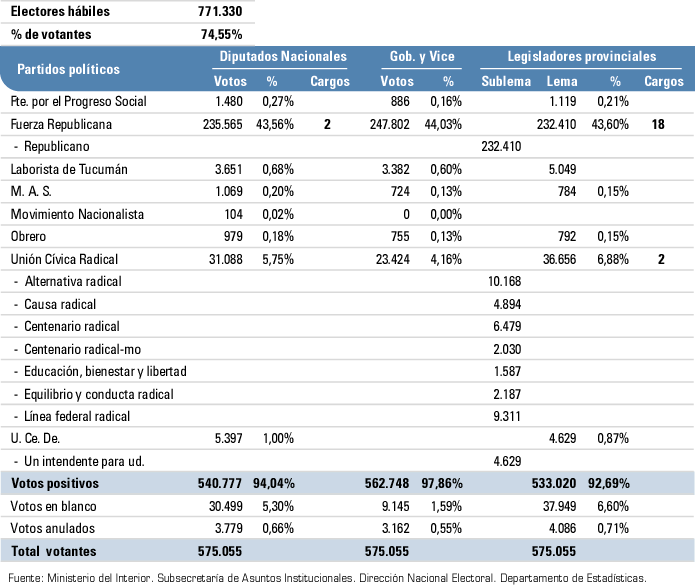 Elecciones nacionales para diputados nacionales y elecciones provinciales para gobernador y vice, legisladores provinciales. Tucumán | 8 de Setiembre de 1991.