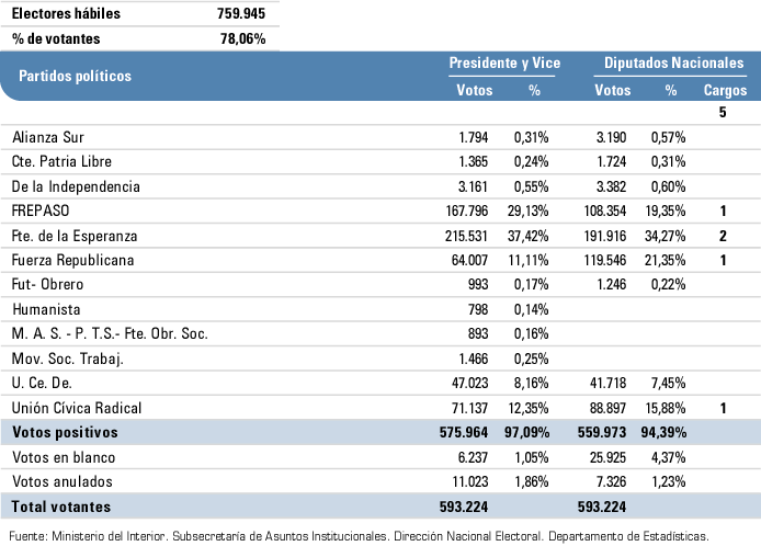 Elecciones nacionales para presidente y vice, y diputados nacionales. Tucumán | 14 de Mayo de 1995.