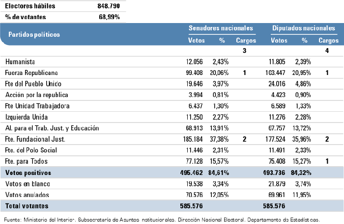 - Confederación FREPASO integrado por: Demócrata Cristiano, Del Frente Grande y Socialista Popular.