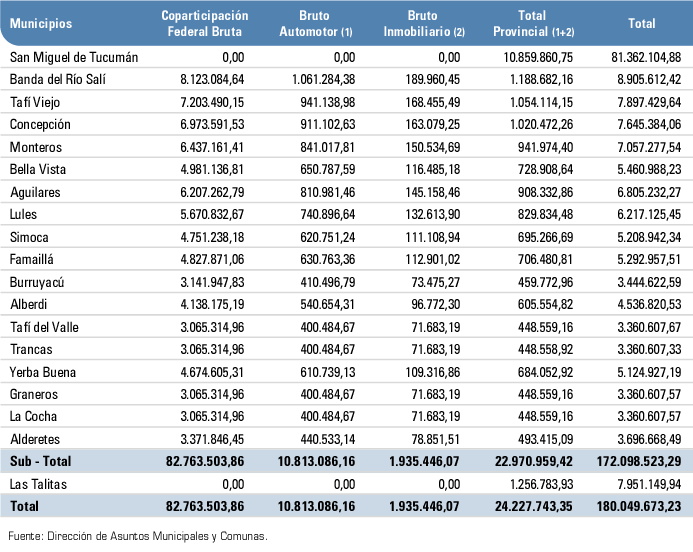 Coparticipación nacional y provincial de municipios. Tucumán | 01/01/2005 al 31/08/2005.