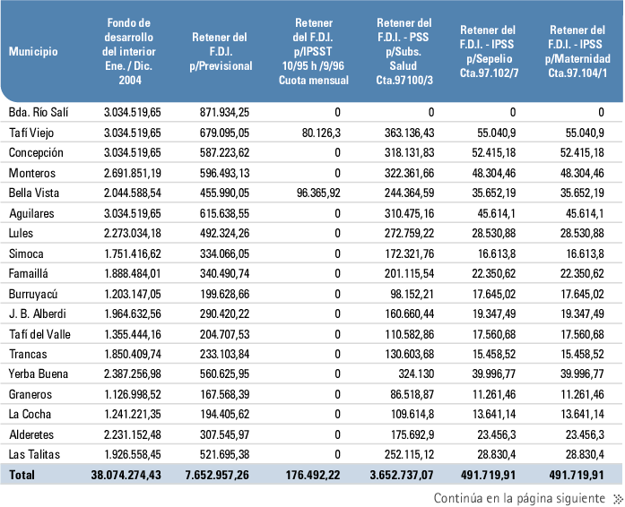 Fondos de desarrollo del interior por departamento. Tucumán | 2004.