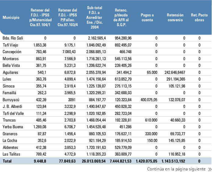 Fondos de desarrollo del interior por departamento. Tucumán | 2004.