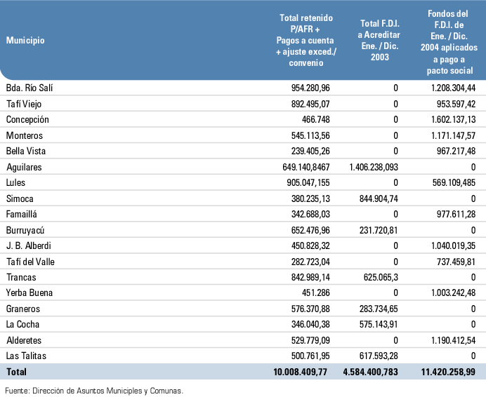 Fondos de desarrollo del interior por departamento. Tucumán | 2004.
