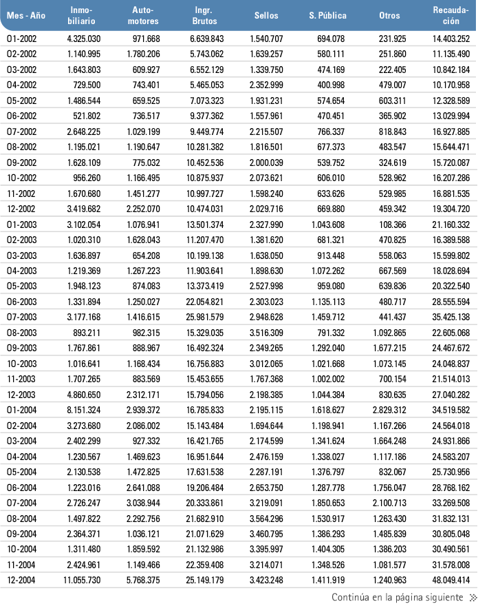 Recaudación mensual de principales impuestos. Tucumán | 2002 - 2005.