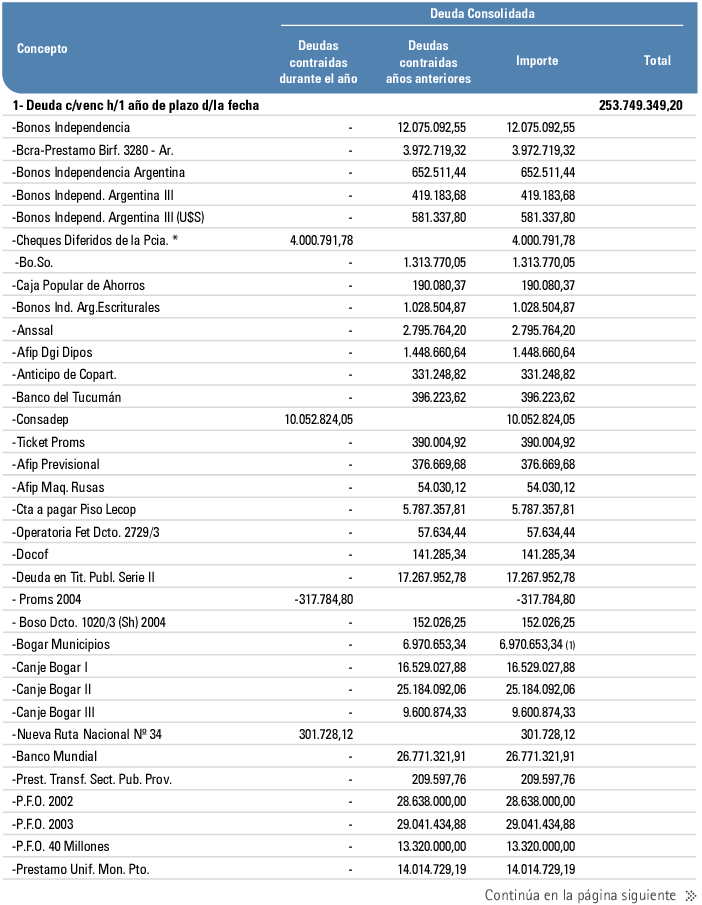 Obligaciones a pagar al 30/11/05. Tucumán | 2005.