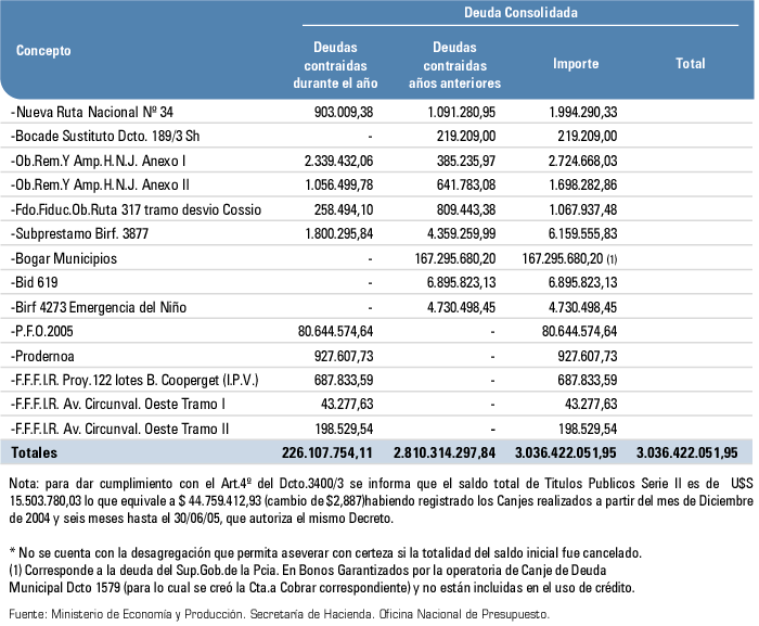 Obligaciones a pagar al 30/11/05. Tucumán | 2005.