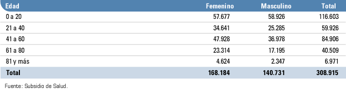 Cantidad de afiliados al subsidio por grupos de edad y por sexo. Tucumán | 2005.